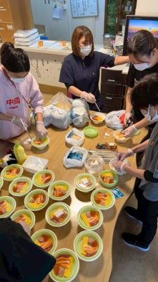 タオルで目隠しをしながら出来上がった『顔』を見て大笑い!!個性豊かな作品で大盛り上がりのイベントとなりました。お昼ご飯には出前を注文し海鮮丼も美味しく召し上がり、笑顔あふれる1日となりました。